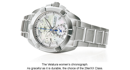 In 2007, SEIKO was chosen as the watch partner of the International 49er Association and Velatura has become the watch of choice for the leading exponents of this, the fastest of all Olympic sailing classes. For 2009, SEIKO and the International 49er Association have renewed this agreement and the gold, silver and bronze medallists at the 2009 World and European Championships, in Italy and Croatia respectively, will receive Velatura Yachting Timers in recognition of their achievements.