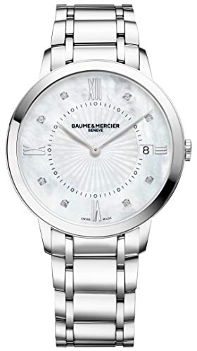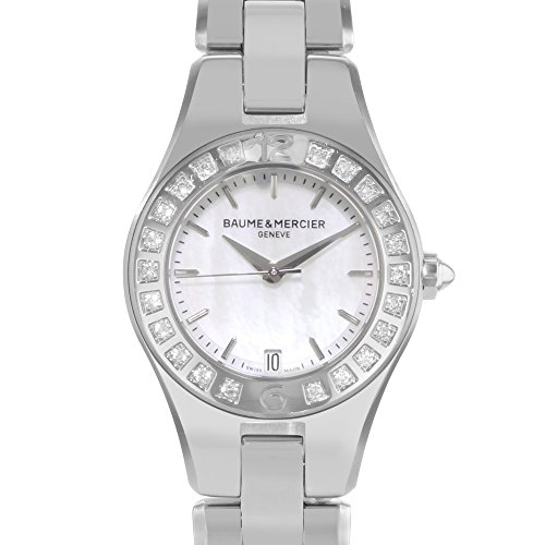 - Mother-of-Pearl Face Diamond 36MM Date Stainless Steel Womens Swiss Watch