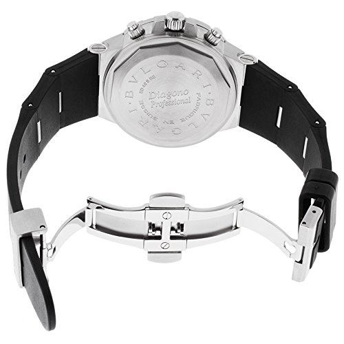 Bulgari Diagono Professional Acqua Scuba 300m watch, rugged stainless case (42mm diameter) with rotating diving bezel, rugged composite rubber strap with steel folding buckle, black dial with luminous hands and hour markers, date calendar at 3 o'clock, self-winding mechanical movement (certified COSC chronometer), scratch-resistant sapphire crystal, waterproof to 300 meters, includes Swiss Official Chronometer Testing Institute certificate. The Bulgari Diagono Professional Acqua Scuba watches are distinctive for their rigorous design and superb technical qualities. Certified by COSC (Contr?le Official Suisse des Chronometers), these chronometers constitute a collection of sport watches combining high reliability with extreme precision. Scuba diving watches are specially designed for water-sports enthusiasts, combining absolute reliability and precision with the elegance of an essential design. The Bulgari Professional Acqua Scuba watches are the ideal choice for those who want a high-tech diving watch without forgoing aesthetics. The Bulgari Diagono Professional Acqua Scuba is available in 38 and 40mm sizes in steel, two-tone, and yellow gold, with leather strap, rubber strap, or metal bracelet. It is equipped with a COSC certified Dubois-Dupraz self-winding mechanical movement, and it is water resistant up to a depth of 200 or 300 meters. There is also a 42mm size that is water resistant to 2000 meters.