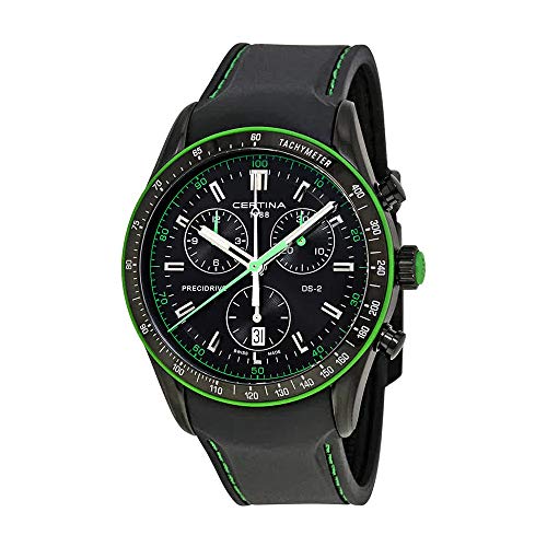 - Men's Chronograph 1/100 sec 41mm Rubber Band IP Steel Case Quartz Watch