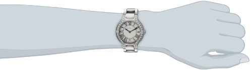 - Stainless steel watch with textured inner dial and jewel-encrusted bezel