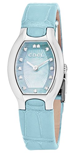 - Womens Light Blue Mother-of-Pearl Face Diamond Light Blue Leather Strap Swiss Quartz Watch