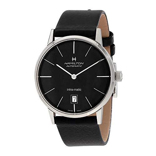 - Men's Swiss Automatic Intra-Matic Black Leather Strap