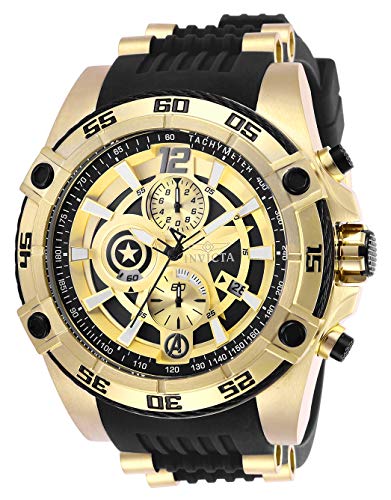 - Black Captain America dial, Silicone and stainless steel band, Push/pull crown