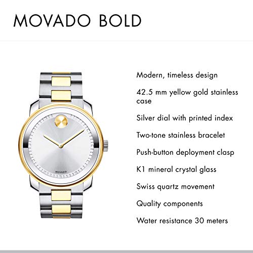 - MODERN, TIMELESS DESIGN: The Movado BOLD men's watch personifies sleek sophistication with a modern, masculine and monochromatic design.