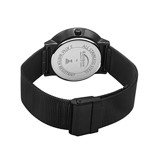 - FEATURES: Stainless Steel Black Mesh Bracelet, water resistant 3ATM, Case Diameter: 40mm, band width 20mm, quartz analog movement. Exclusive Rainbow Collection Case.