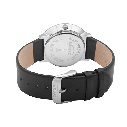 - FEATURES: Leather band, water resistant 3ATM, Case Diameter: 40mm, band width 20mm, quartz analog movement. Exclusive Rainbow Collection Case