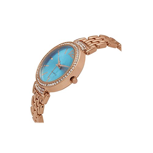 - CREATES A SPECTACULAR LOOK - The striking aqua watch dial attractively contrasts the rose-gold hour markers and bracelet. The captivating color combination will undoubtedly appeal to a lot of your female friends.