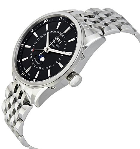 - Silver dial with line guilloche frame, "Oris Automatic" printed at the 12 o'clock position, Blued luminescent hands, Center sweep seconds hand, Blue applied Arabic numerals