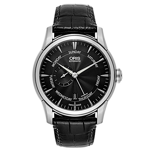 - Silver guilloche dial with 'Oris Automatic' printed at the 12 o'clock position and 'Swiss Made' at the 6 o'clock position, Date window at the 6 o'clock position