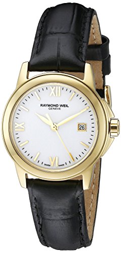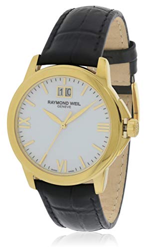 - Gold plated stainless steel case with black crocodile leather strap and white dial fixed with date display