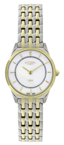 - Ladies Swiss Made Ultra Slim Watch With Two Tone Bracelet And White Dial