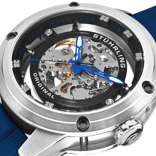 - Men's Leisure Zolara 360 Automatic Skeleton Blue Rubber Strap Watch