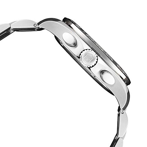 - Includes unidirectional rotating bezel with count-up scale, military time, date window, and battery end-of-life indicator
