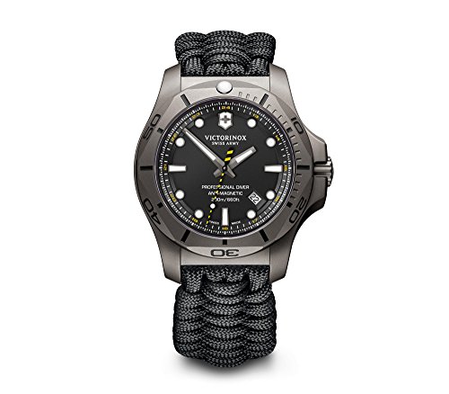 - ISO 6425 certified diver watch with Swiss made quartz movement, antimagnetism, 200 m water resistance and an innovative handwoven survival paracord strap to fit safely over a wetsuit. With a hypoallergenic and lightweight titanium case for absolute comfort