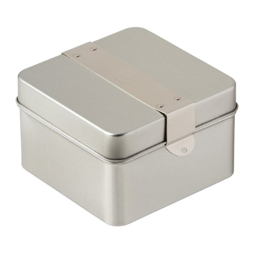 - Square screw-edge watch featuring round dial with Arabic numeric indices, magnified date window, and white-filled hands